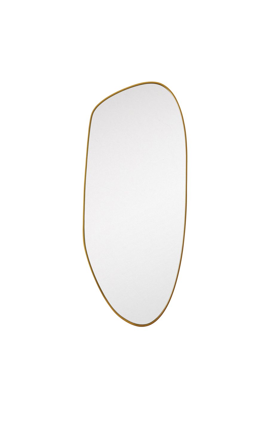 Minimalistyczne, ale jednocześnie bardzo stylowe lustro ze złotą ramą o organicznym kształcie. Przedstawiony model na fotografii można zamówić w innym formacie zależnie od potrzeb i preferencji klienta. Bazą modelu są odporne na działanie wilgoci lustra belgijskiego producenta – firmy AGC. Rama wykonana jest z wodoodpornej płyty MDF pokrytej dwuskładnikowym lakierem poliuretanowym.