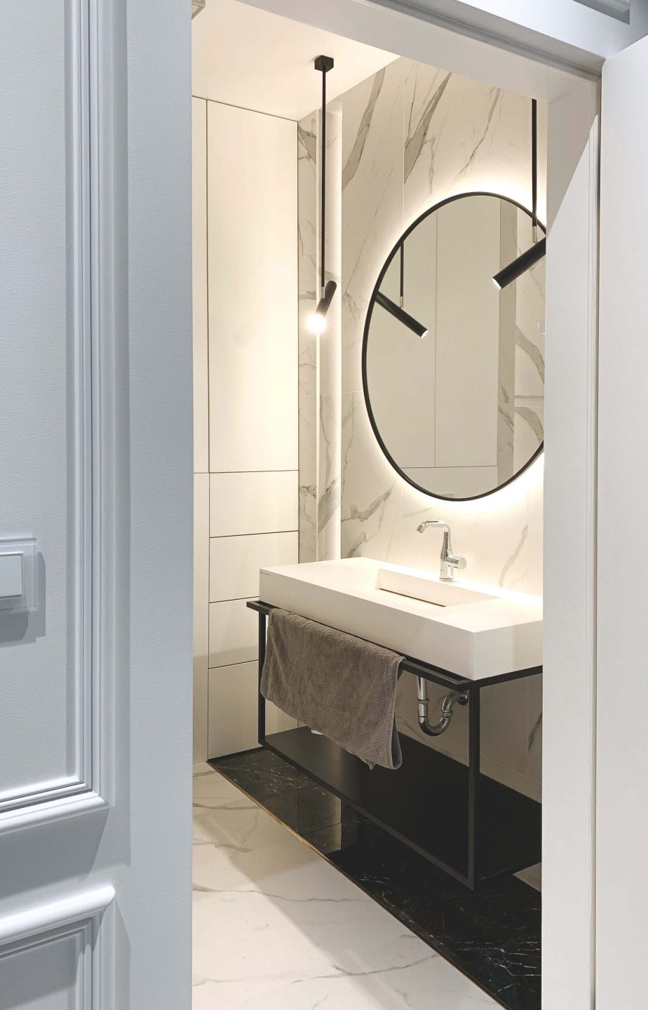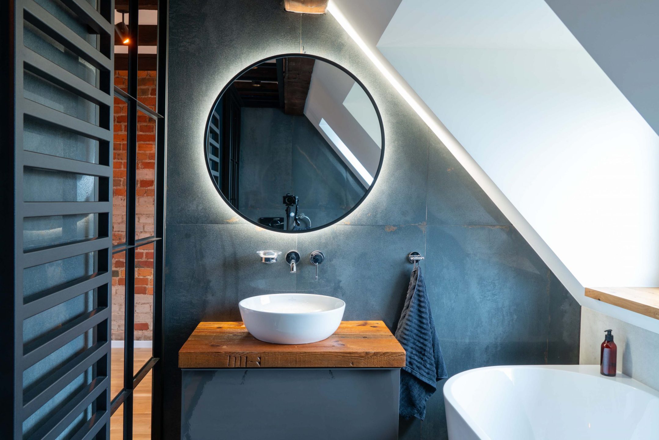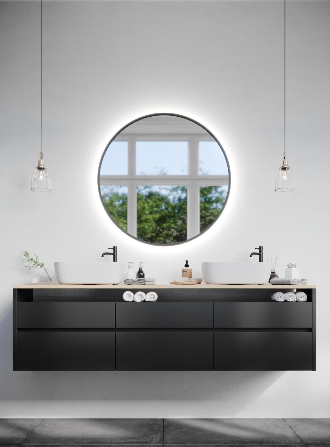 Okrągłe lustro ociepla wnętrze, dodaje mu uroku i przełamuje pewne schematy tkwiące w nawet najbardziej zatwardziałych gustach. Podświetlenie ma swoje funkcje estetyczne i użytkowe – oczywiście, na pierwszy plan wysuwają się te pierwsze. Bardzo dobrze wygląda to na ciemniejszych płytkach, które tworzą swoisty kontrast. Na jaśniejszych płytkach będą robić większe wrażenie przy ograniczonym dostępnie światła.