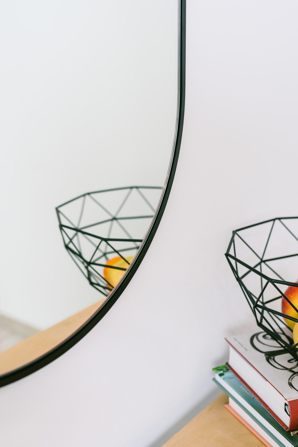 Owalne lustro w cienkiej ramie to właśnie ta prostota, która pasuje do wielu odłamów wnętrzarskich aranżacji. Czarna rama lustra wykonana jest z płyty MDF, która cechuje się odpornością na działanie wilgoci i korozji. Jej szerokość to 8 mm, a wysokość wynosi 19 mm. Z tyłu lustra umieszczone są dwa zaczepy do montażu. Są one zrównane z ramą, dlatego po zawieszeniu lustro nie odstaje od ściany. Rozmiar lustra może być indywidualnie wybrany przez klienta. Lustro na zdjęciach ma format 45 x 90 cm. Sama tafla lustra ma grubość 4 mm i jest wykonana z wysokiej jakości belgijskiego szkła. W przeciwieństwie do chińskich luster wątpliwej jakości nasze lustra są trwałe, odporne na mikrouszkodzenia, drobne rysy i efekt matowienia. Na życzenie klienta istnieje możliwość podklejenia lustra folią ochronną – w przypadku zbicia szkło nie rozbryźnie się na drobne i niebezpieczne odłamki.