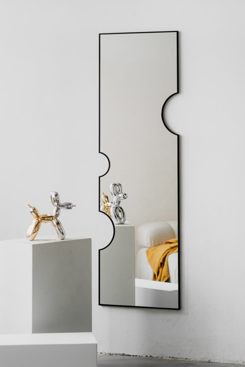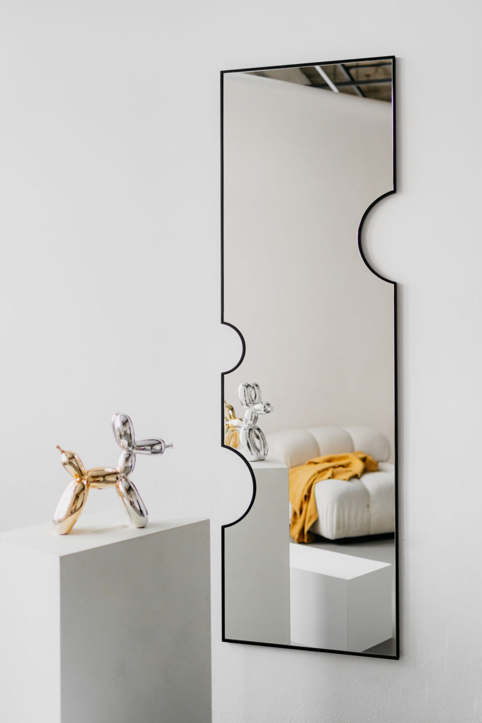 Wysokie lustro Holey Long w czarnej ramie jest idealną propozycją na korytarz, do przedpokoju lub sypialni. Jego wymiary sprzyjają przeglądaniu się w całej okazałości. Lustro można dobierać w wielu różnych formatach. Wąska rama jest wykonana z płyty MDF pokrytej dwuskładnikowym poliuretanowym lakierem, który jest odporny na szkodliwą działalność wilgoci. Szerokość i wysokość ramy to odpowiednio 8 mm i 19 mm, zaś grubość samego szkła to 4 mm. Tafla lustra wykonana jest z najwyższej jakości europejskich szkieł, dlatego są one odporne na matowienie czy pojawiające się często w chińskich lustrach korozję. Z tyłu lustra znajdują się zawieszki, dzięki którym lustro można zamocować i nie będzie ono odstawać od ściany. Na życzenie klienta lustro może być przystosowane do oparcia o ścianę oraz zabezpieczone od tyłu folią ochroną, tak aby wskutek nieszczęśliwego zbicia nie rozsypało się ono na drobne kawałki.