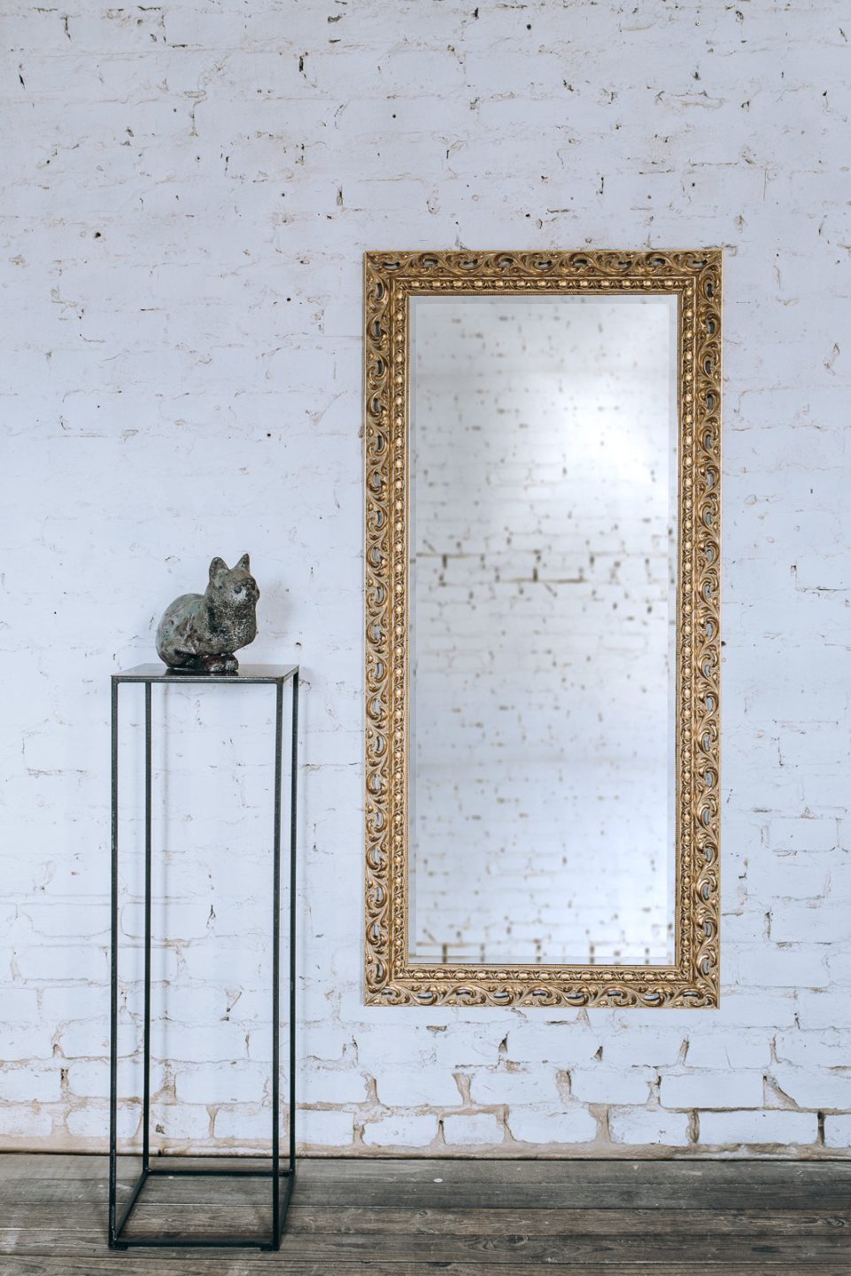 Złote lustro glamour. Oprawione w ornamentową ramę, która nadaje jej bogaty charakter. Lustro idealnie sprawdzi się we wnętrzach w różnych stylach. Do zawieszenia w pionie bądź poziomie. Z tyłu lustra dwie zawieszki, na których wiesza się lustro. Na życzenie klienta może być do postawienia. Rama wykonana z drewna. Listwy wykorzystane do produkcji ramy do lustra pochodzą od włoskiego producenta.