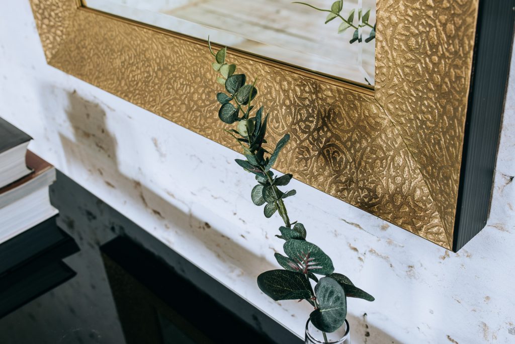 Lustro w eleganckim wydaniu – lustro w złotej, zdobionej ramie