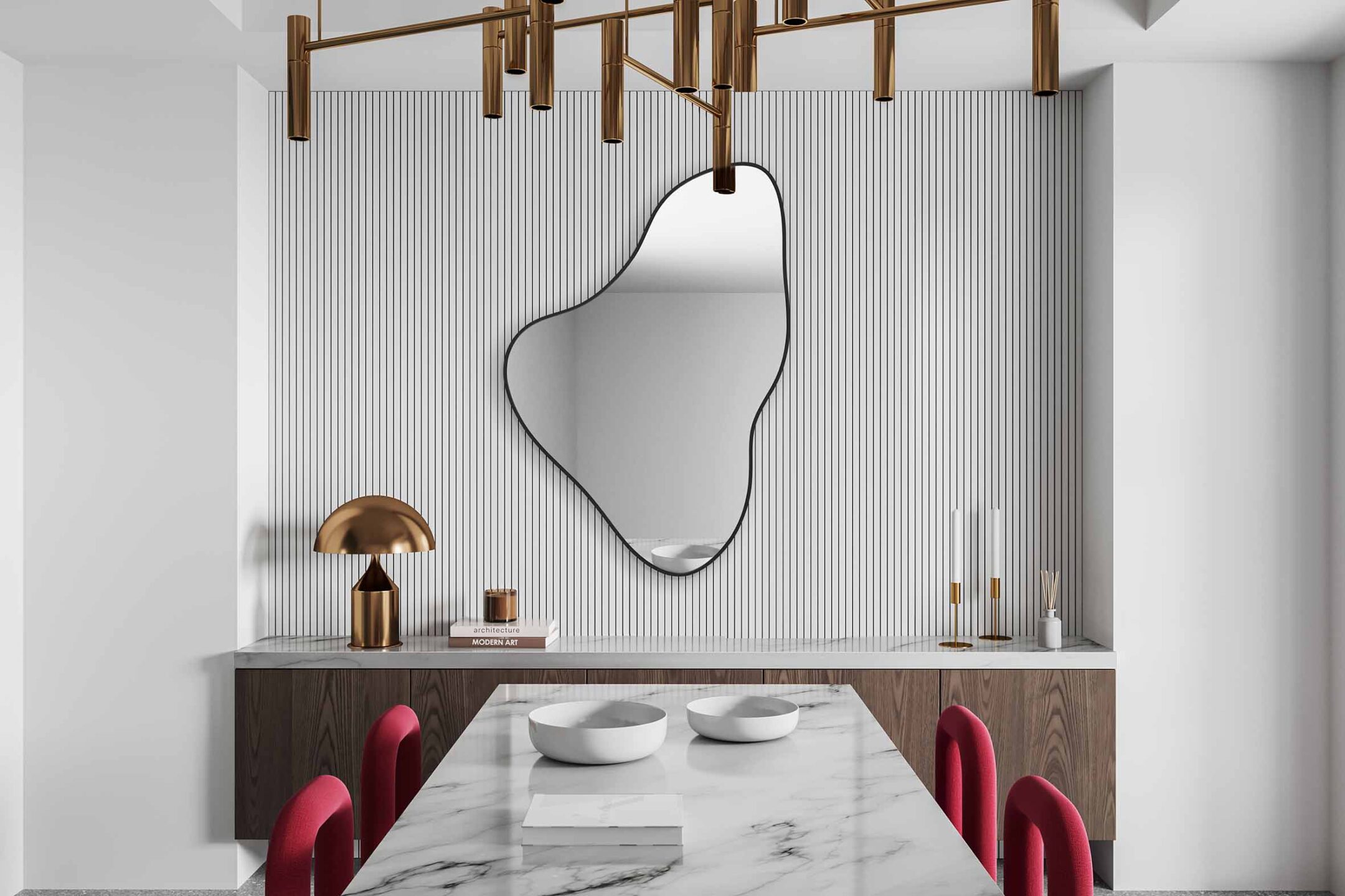 Wszelkie zaokrąglenia i obłości mają zbawienny wpływ na ludzką psychikę, ułatwiając wejście w stan relaksu. Z tego powodu takie lustra w organicznych kształtach dobrze jest wieszać w zacisznych zakątkach domu, gdzie lubimy się odciąć od problemów: sypialnia, łazienka, część wypoczynkowa w salonie. Nurt biofiliczny pasuje do nowoczesnych, jak i klasycznych wnętrz w stylu modern classic, nowojorskim, scandi chic, boho, organic chic.