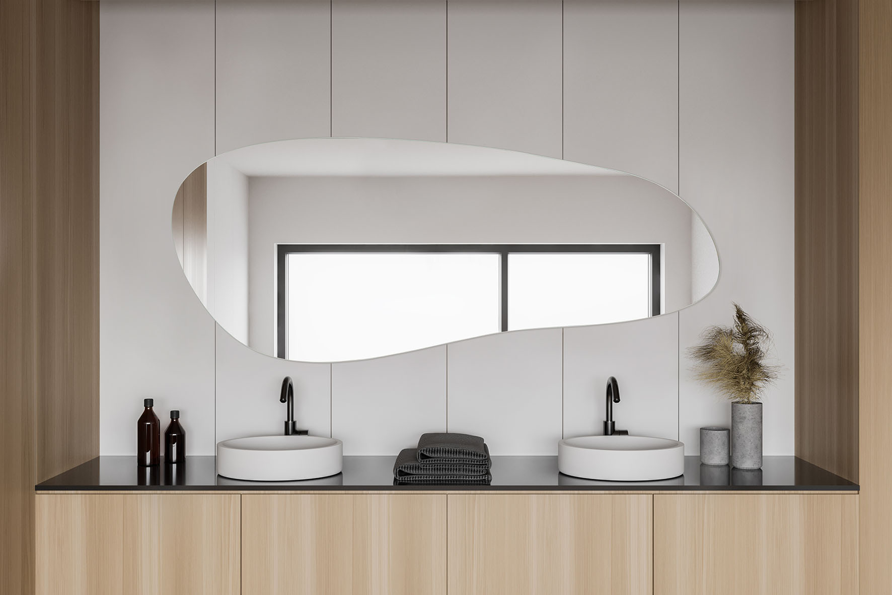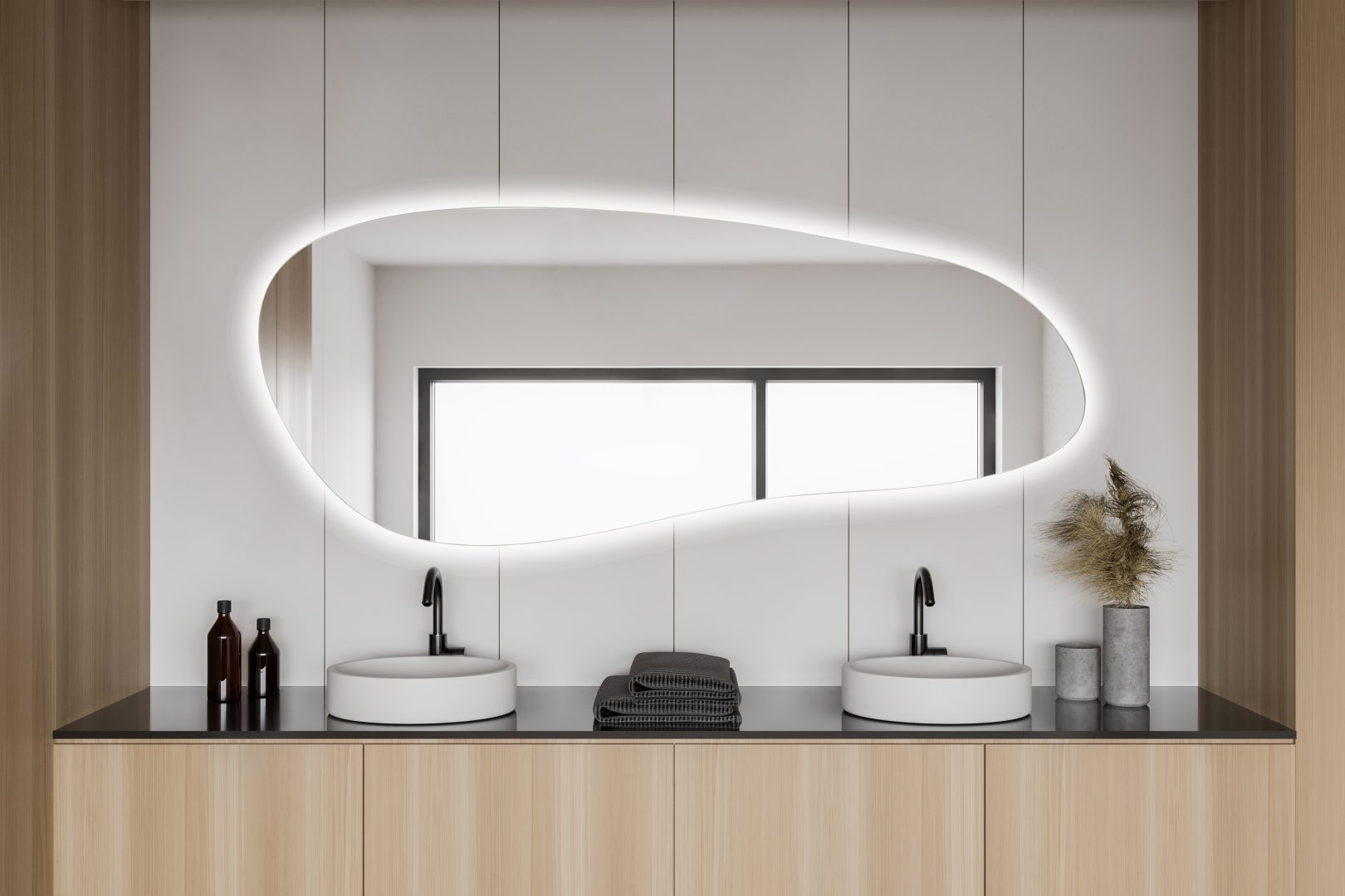 Organiczne lustro z podświetleniem doskonale sprawdzi się w każdej nowoczesnej łazience. Światło wydobywające się zza lustra podkreśli charakter ściany oraz doświetli wnętrze. Lustro z podświetleniem na pewno będzie głównym elementem dekoracyjnym każdej łazienki i nie może go zabraknąć w nowoczesnych wnętrzach. Idealnie sprawdzi się w wielu nowoczesnych wnętrzach: w stylu modern, skandynawskim, loftowym i nie tylko.