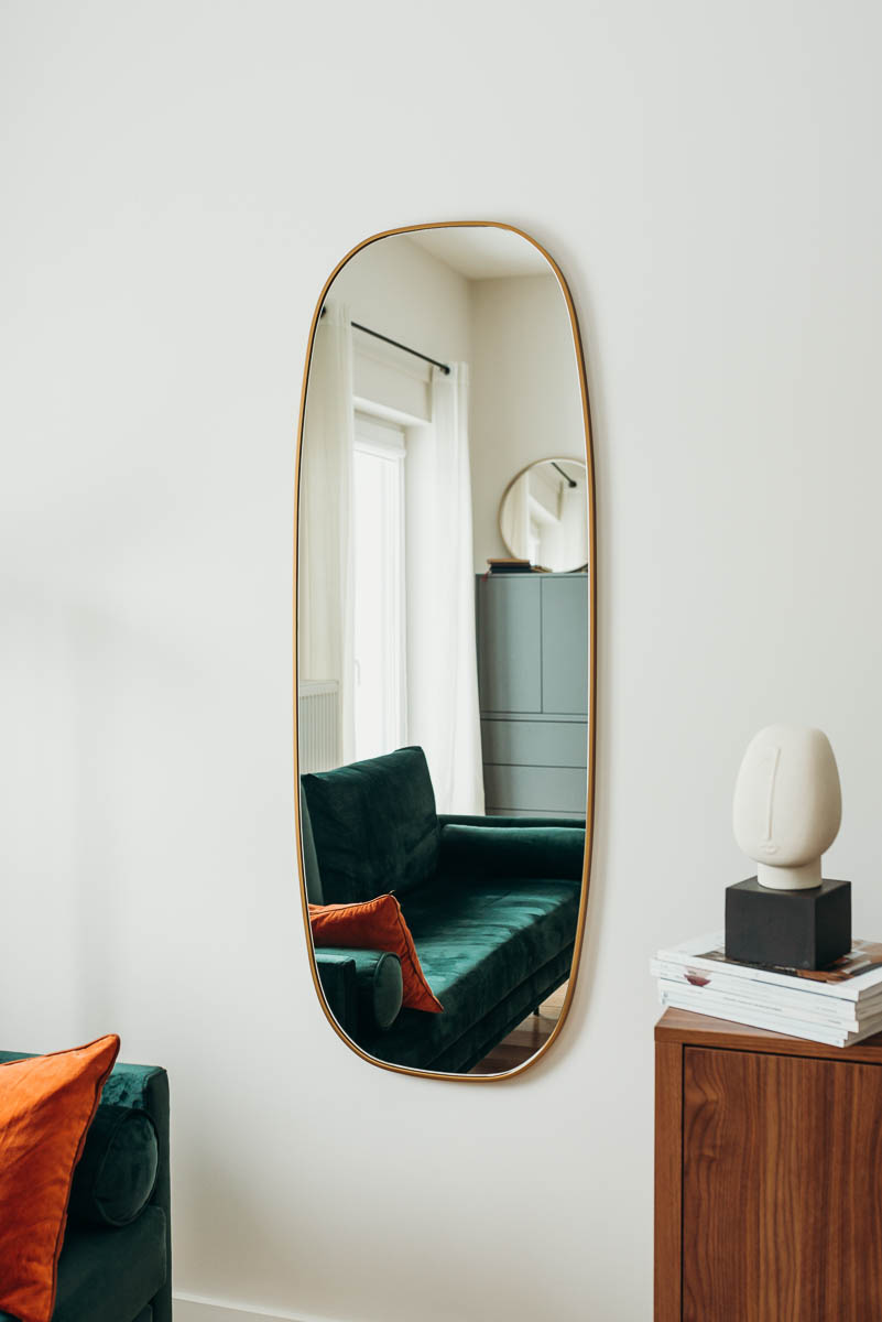 Lustro o kształcie przypominającym beczkę doskonale sprawdzi się przy różnych stylach – począwszy od modern glamour, retro i vintage, przez style boho i etno po aranżacje typowo casualowe. Złoto w dodatkach jest obecnie bardzo popularne, a oryginalny kształt lustra – beczka – zwraca na siebie uwagę i przenosi całą aranżację wnętrza o kilka poziomów wyżej. Lustro sprawdzi się w przedpokoju, sypialni oraz garderobie.