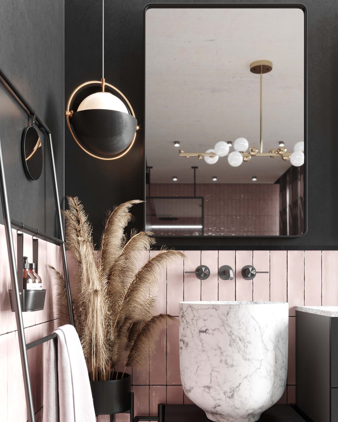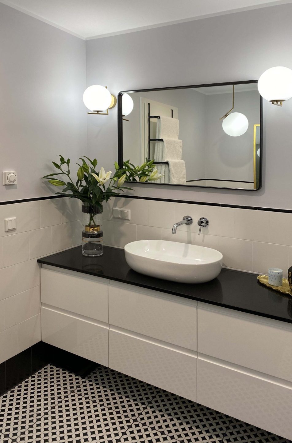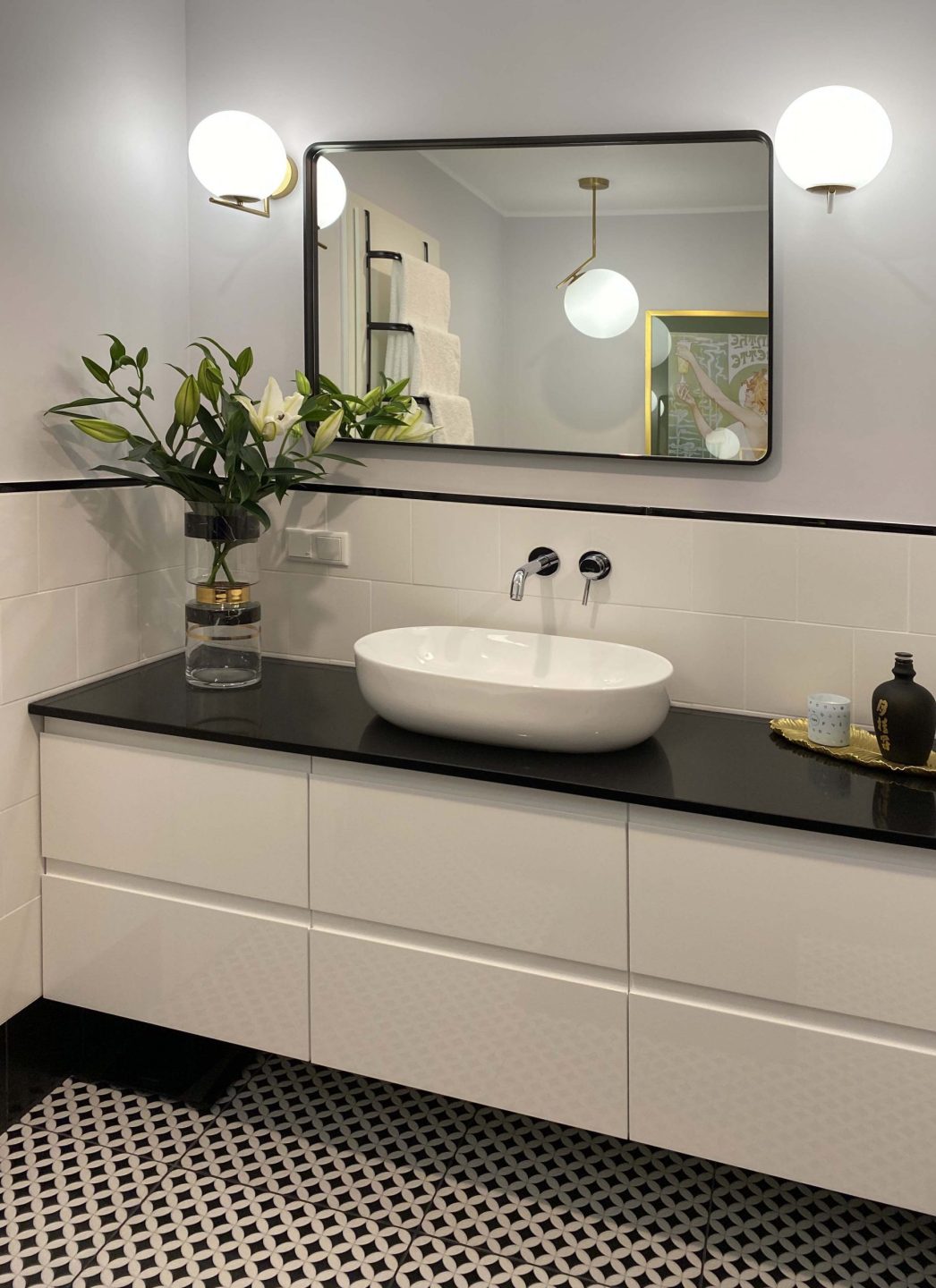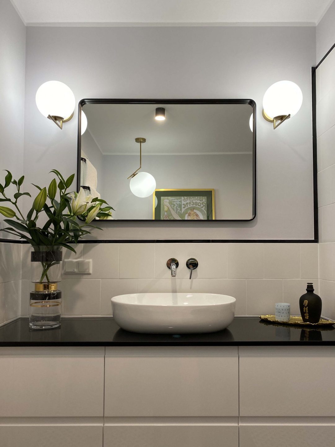 Lustro sprawdzi się w surowych, męskich wnętrzach, w których dominuje czerń, szarość i minimalizm. Z drugiej strony będzie świetnie współpracować z jasnymi wnętrzami i elementami złota. Dobrze wpasuje się w styl nowojorski jak i klasyczny. Dzięki swoim kształtom i klasycznej matowej formie, lustro będzie wydobywać z wnętrz porządek i symetrię. Można powiesić je nad umywalką na białych lub szarych ścianach, a cały efekt wizualny podkreślić złotymi dodatkami lub kloszami na lampy. Szarość, biel, złoto i czerń to barwy, w których to zestawienie będzie wyglądać szczególnie dobrze. To produkt, który nie ma być widoczny zaraz po wejściu do pomieszczenia, ono nie ma za zadanie razić w oczy. Jego celem jest zgrabne i wyrafinowane podkreślenie stylu wnętrza.