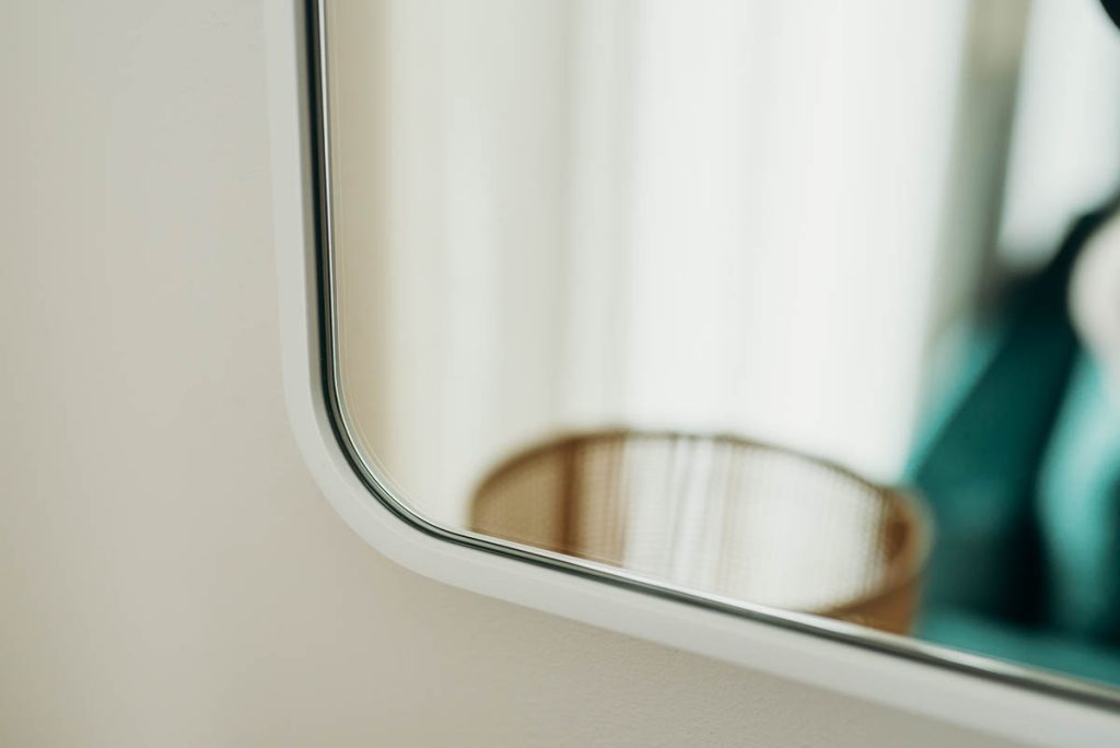 Biel ma również to do siebie, że jest kolorem uniwersalnym i pasującym do wszystkiego. Lustro w ramie z zaokrąglonymi narożnikami w kolorze bieli dedykowane jest do przedpokojów, sypialni, garderoby lub łazienki. Oczywiście, dedykowany nie oznacza sztywnej etykiety i braku możliwości aranżacji w innych miejscach. Rama lustra wykonana jest z twardej płyty MDF pokrytej dwuskładnikowym lakierem poliuretanowym, który zapewnia odporność na wilgoć. Tafla lustra to 4-milimetrowa warstwa najwyższej jakości belgijskiego szkła. Z tyłu umieszczone są dwa zaczepy do montażu na ścianie – lustro doskonale do niej przylega. Szerokość ramy to 8 mm, a jej wysokość wynosi 18 mm – to wartości zmienne. Zmienną jest też wielkość i format samego lustra, którą można indywidualnie dobrać na życzenie klienta. Każde lustro jest tworzone z kunsztem i starannością, a do naszych klientów podchodzimy indywidualnie. Na życzenie produkt może być podklejony folią ochronną – w przypadku rozbicia lustro nie rozbryźnie się na małe kawałki.