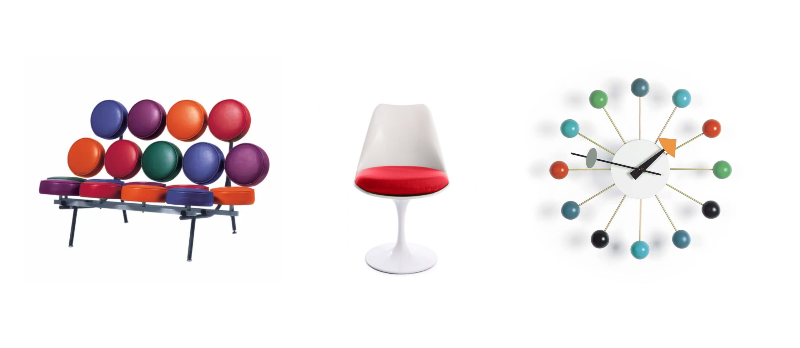 Charakterystyczną cechą jest połączenie prostych, czystych linii z funkcjonalnością. Meble i akcesoria tworzone w tym okresie były często oparte na zasadach minimalizmu, ale jednocześnie kładły duży nacisk na wygodę i praktyczność. Ten styl to doskonale znane formy i designerskie meble Tulip Chair, czy Marshmallow Sofa.To także epoka, w której eksperymentowano z nowymi materiałami, takimi jak tworzywa sztuczne i stal nierdzewna.