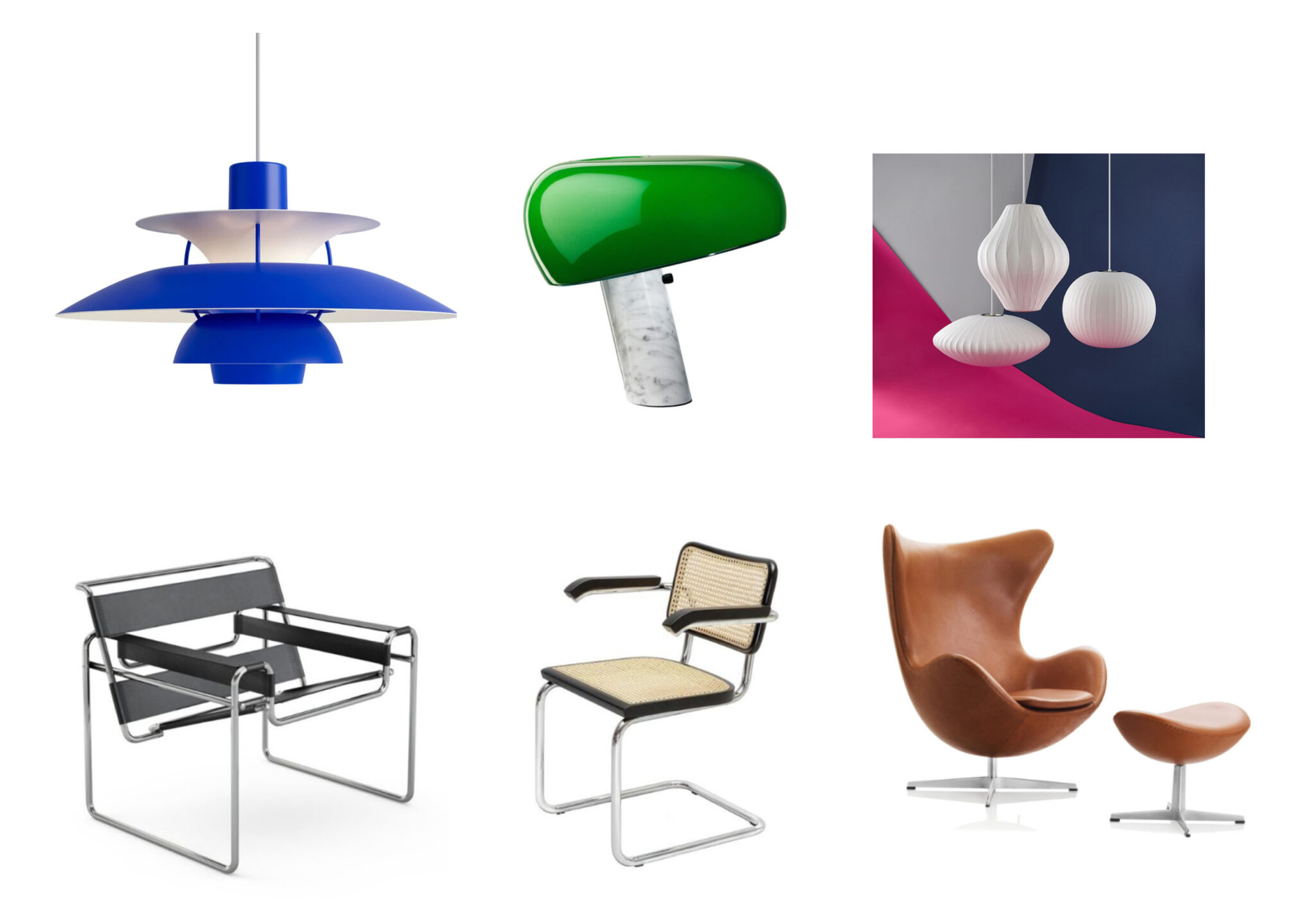 Ówcześnie spotykane ikony – klasyki stylu mid-century modern we wnętrzach to m. in.: