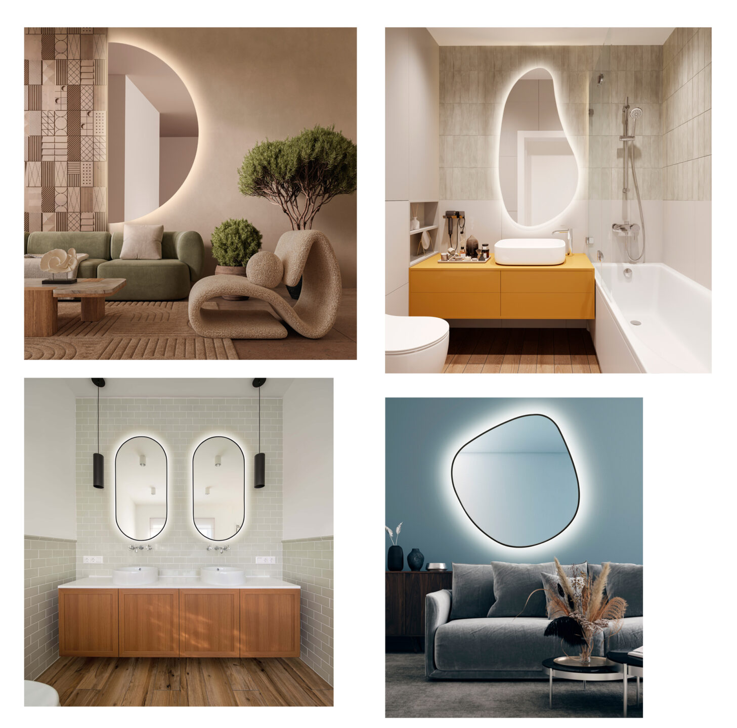 We współczesnym wydaniu lustra mid-century modern przybierają biofiliczne kształty. Duże, nieregularne lustro łazienkowe w stylu Mid-Century może stać się centralnym punktem każdej łazienki, dodając jej elegancji i funkcjonalności. Lustro w ramie z naturalnego drewna lub metalu nawiąże do klasycznego designu tego okresu.