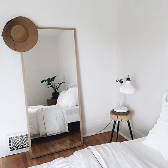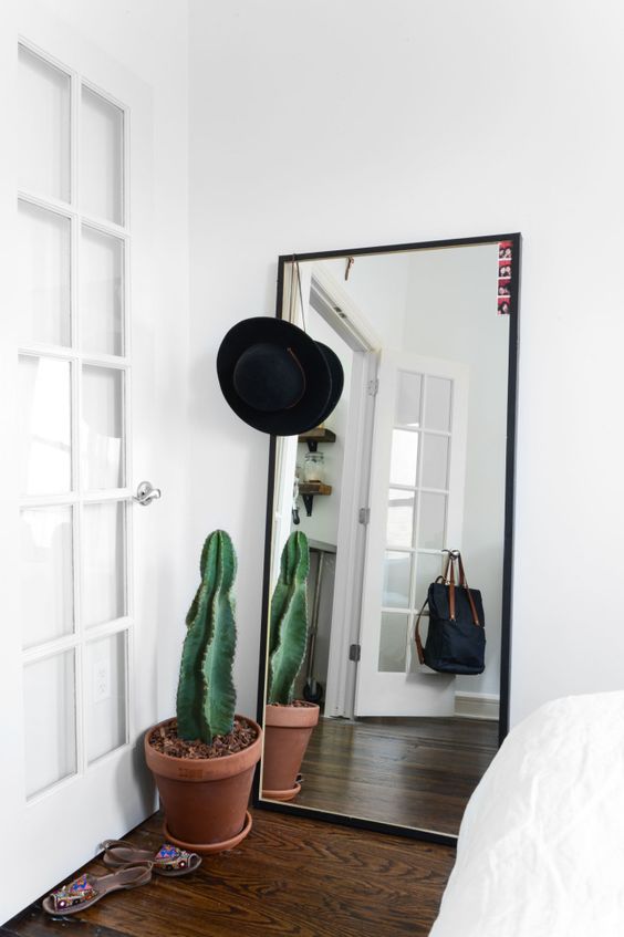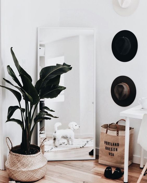Nasza rada: postawcie przy lustrze dużą zieloną roślinę. Niech się w nim odbija, delikatnie zachodzi na jego ramę i multiplikuje się we wnętrzu. Styl skandynawski bardzo lubi rośliny!