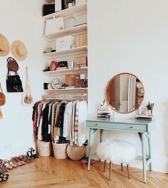 Sypialnia świetnie wygląda też z lustrem okrągłym, szczególnie jeśli jest ono elementem toaletki do makijażu lub… kiedy zawiśnie nad łóżkiem. Taki kontrast kształtów łóżka i lustra, wygląda naprawdę intrygująco, dając efekt retro lub glamour. Zwłaszcza kiedy lustro będzie w złotej lub srebrnej ramie.